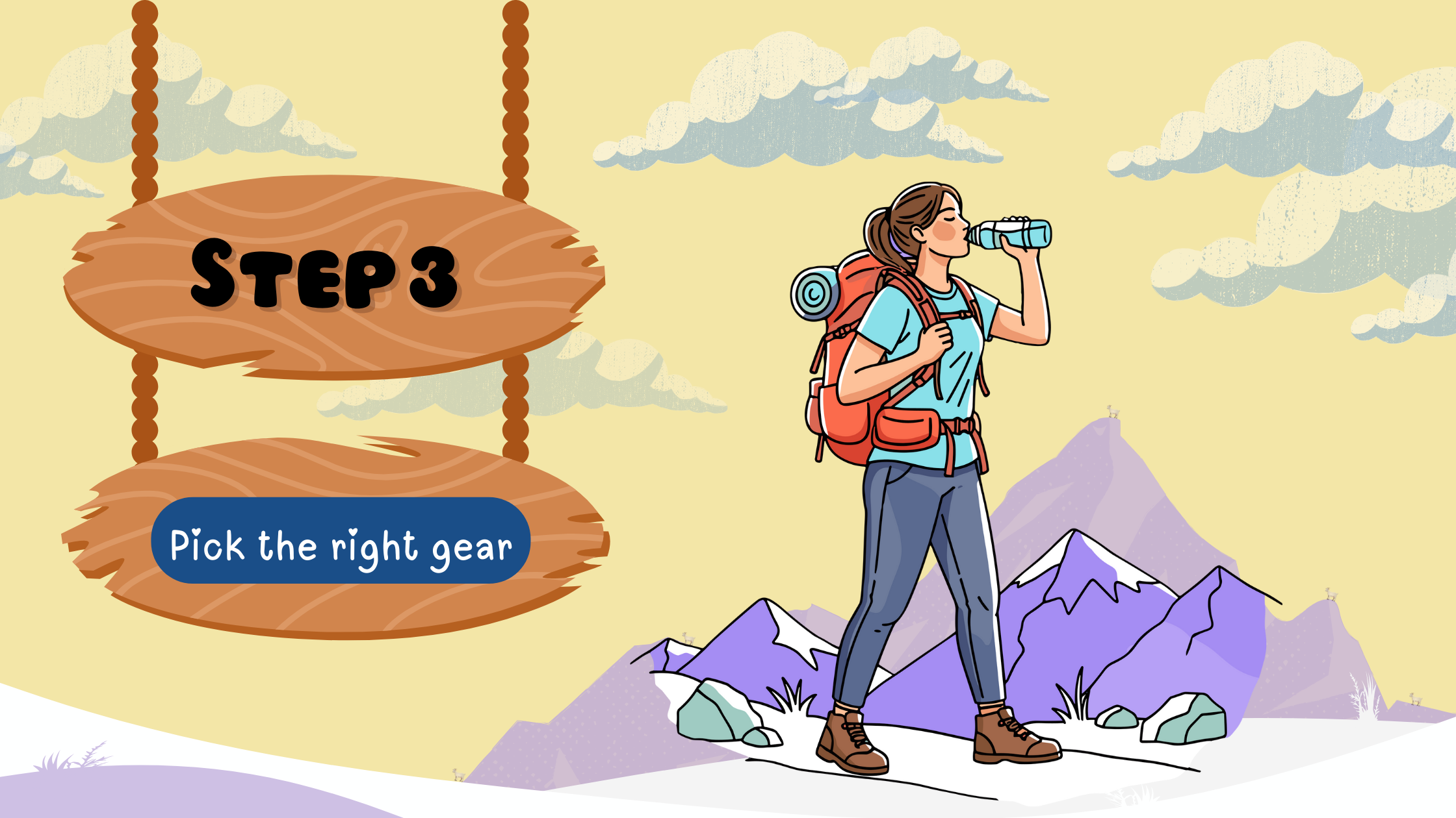 Just like you can’t play sports without the right equipment (playing soccer without a ball would be pretty tough!), you can’t hike without the right gear. By the end of this step, you should have your hiker backpack ready.